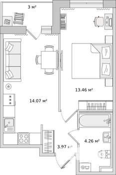 1-к квартира, вторичка, 38м², 12/19 этаж